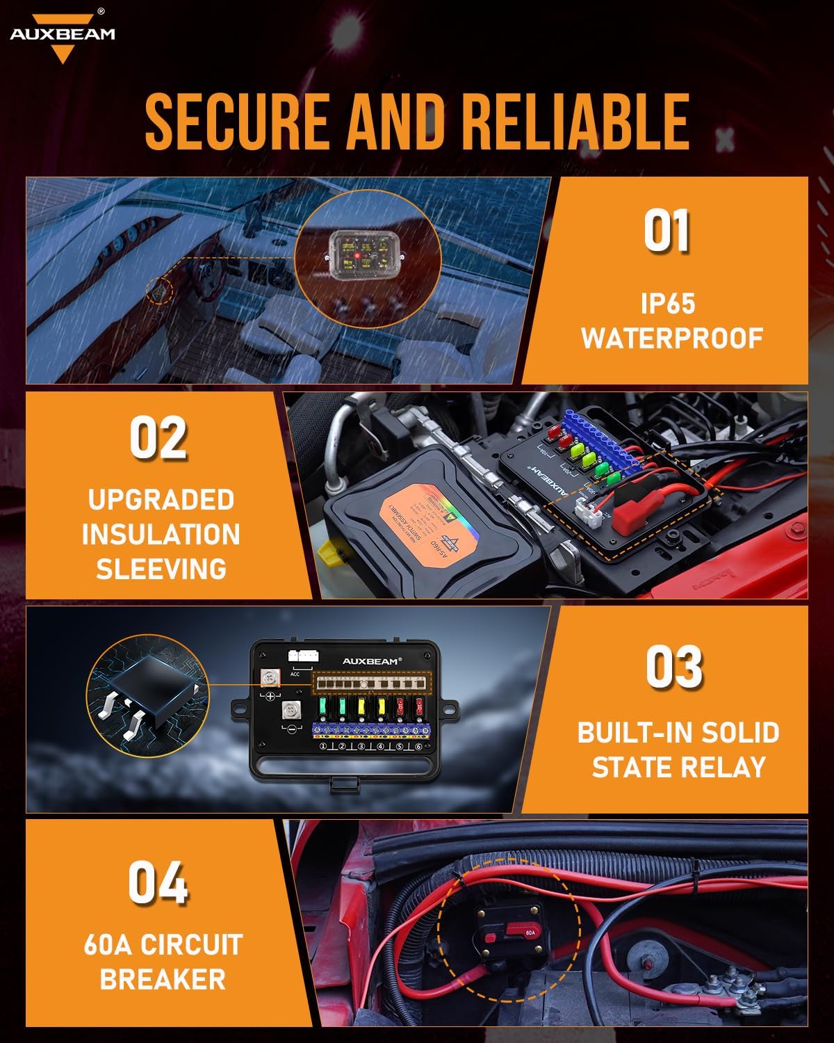 【Specifications】This professional 6 gang switch panel is designed for DC 12V~24V accessories, with a power range of 720W~1400W, a working temperature range of -40~221°F, and a maximum current of 60A. Without APP.