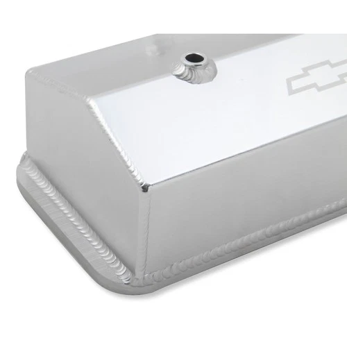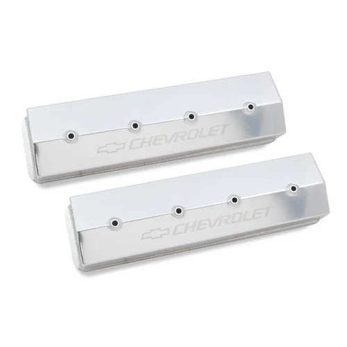 Holley is pleased to release its latest fully licensed product–GM Track Series Fabricated Aluminum Valve Covers. The GM Track Series family of valve covers gives you an excellent way to add a high-end fabricated look combined with a lightweight and tough valve cover for your favorite Chevy engine. These valve covers are constructed of 6061 T5 sheet aluminum, feature a laser etched “Chevrolet” and Bow Tie logo, and precision TIG welded for a proper fit. They are available in silver anodized or black coated finishes along with various heights to clear most popular rocker arm combinations. All of our valve covers include mounting hardware for quick and simple installation.