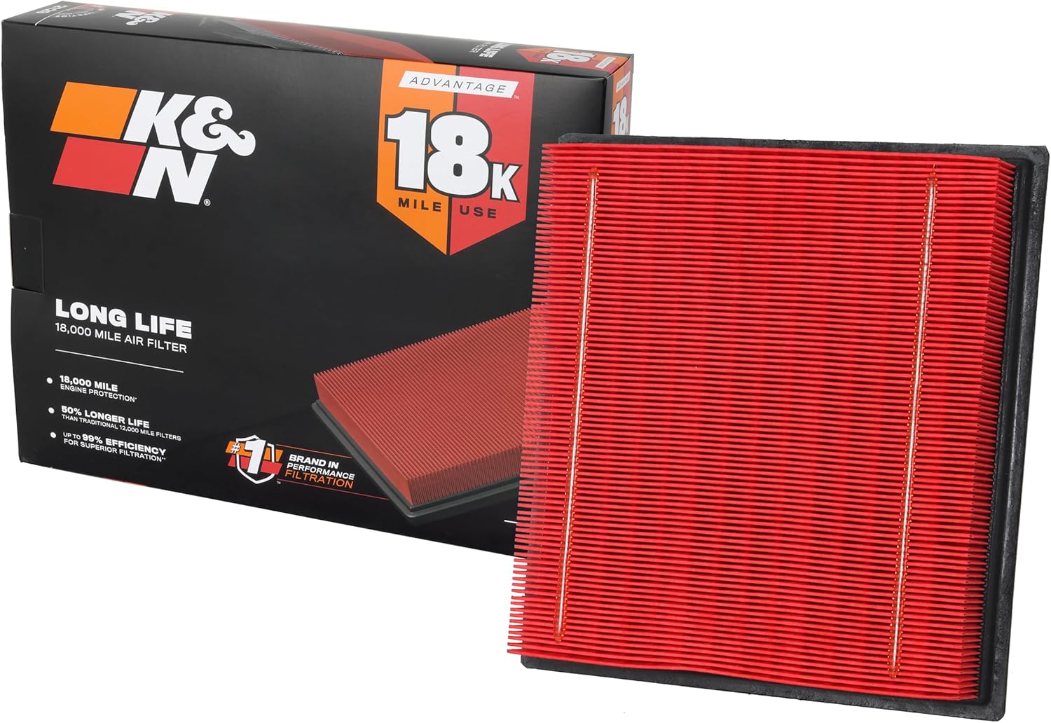 EXTENDED LIFE 18K: K&N vantage Plus Air Filter provides 50% longer life compared to standard 12,000-mile filters.