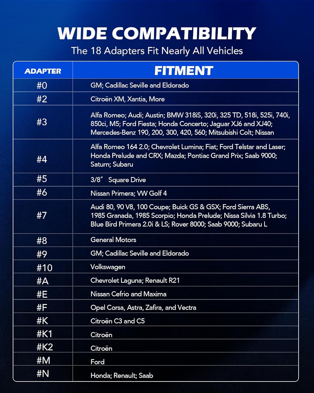 Universal Compatibility: This brake caliper tool kit includes a wide range of apters to fit most vehicles, including hundreds of American, Japanese, and European models, fully covering your brake servicing needs