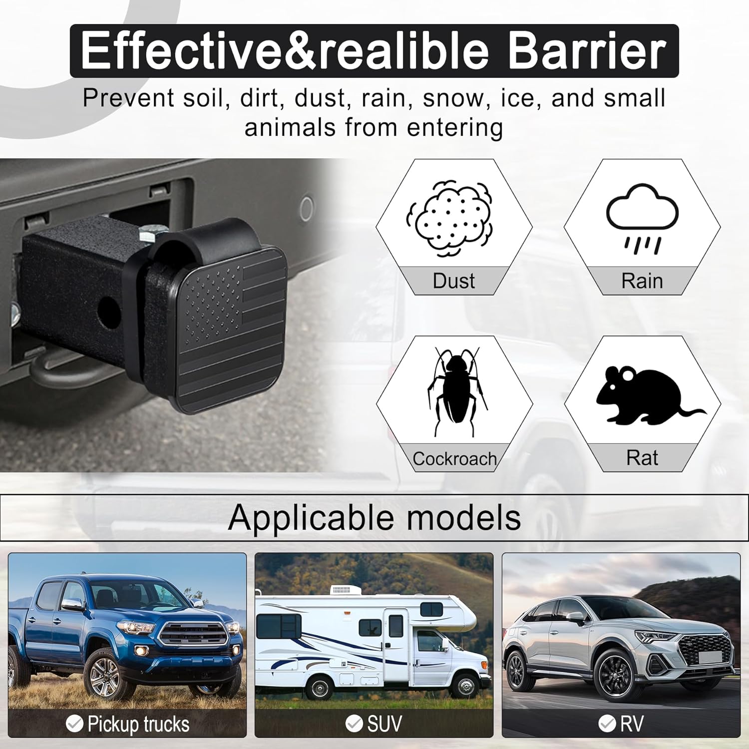 【Universal Design】The 2-inch size with the flag exterior design is not only suitable for most vehicles, but also stylish and beautiful. Fits most 3-inch trailer hitch receivers on trailers, SUVs, Jeeps, RVs, cars, pickup trucks, etc. It is recommended to measure the size of the hitch receiver before purchase.