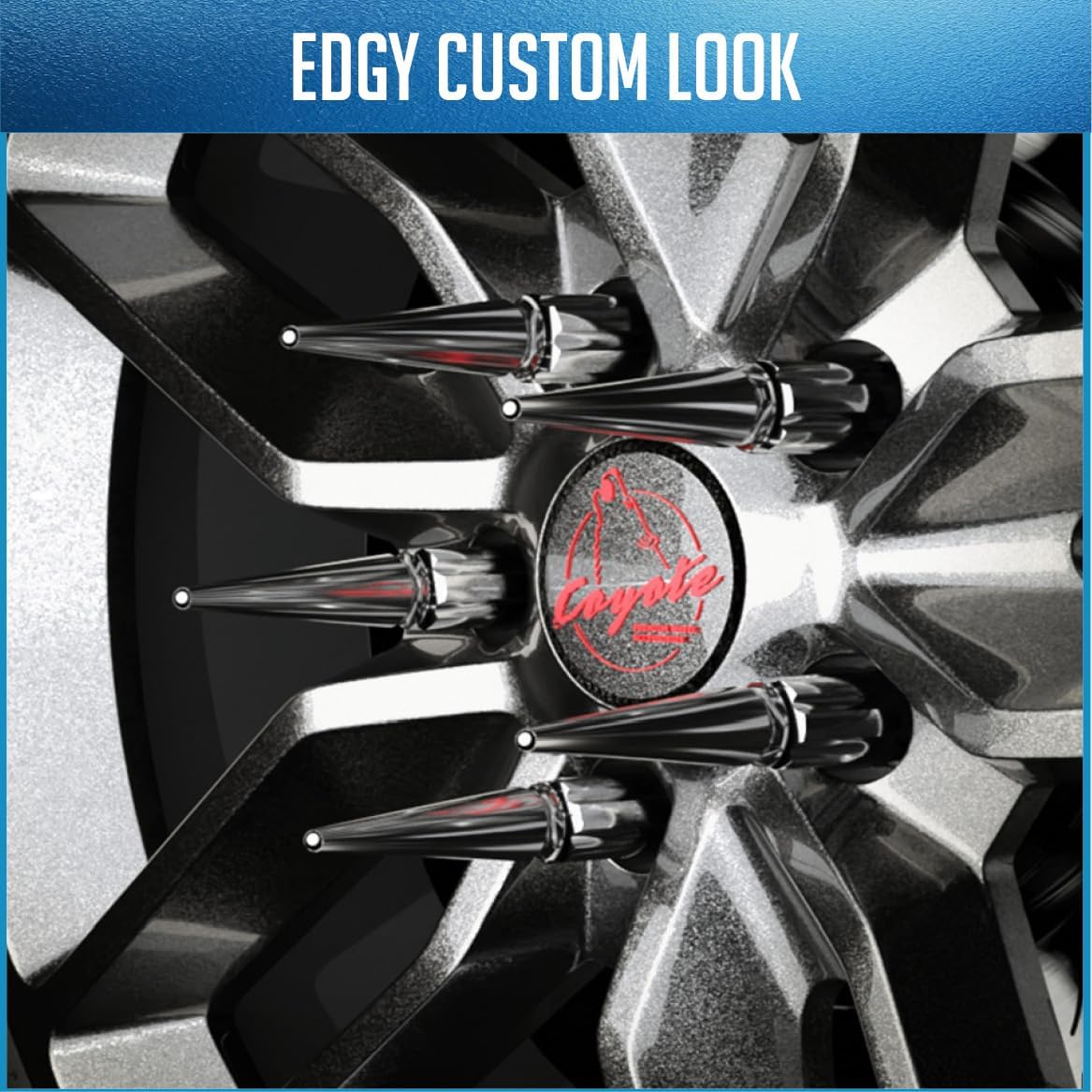 EXACT FACTORY SPECIFICATIONS: Includes 24 Pcs M14x1.5 Spiked Lug Nuts | 14×1.5 lug nuts Thres | Spike Style | 4.4″ Long | Truck Spline Hex | 60 Degree Conical Seat | True One-Piece Heat Treated Carbon Steel Construction with Chrome Finish